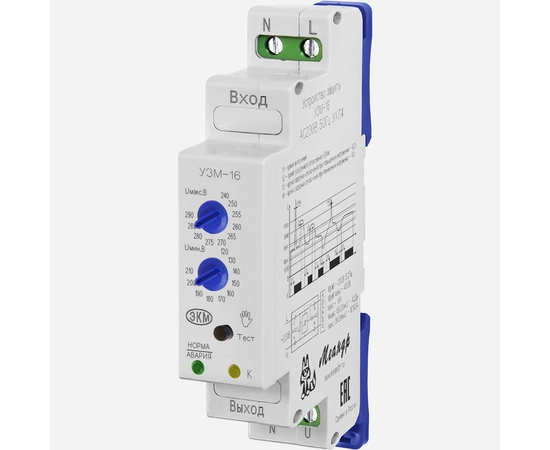 Устройство выпускается в унифицированном пластмассовом корпусе и представляет собой реле контроля напряжения с мощным электромагнитным реле на выходе и варисторной защитой. Устройство устанавливается на монтажную рейку-DIN шириной 35 мм (ГОСТ Р МЭК 60715-2003) с передним подключением проводов питания защищаемых электрических цепей. Клеммы туннельной конструкции обеспечивают надёжное закрепление проводов с суммарным сечением проводников до 33мм.